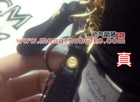 这就是正品包带的金属扣MCM烙印,明显要比上面的假包的好,正品金属上mcm的烙印边缘清晰,这才是正品的特征嘛。
