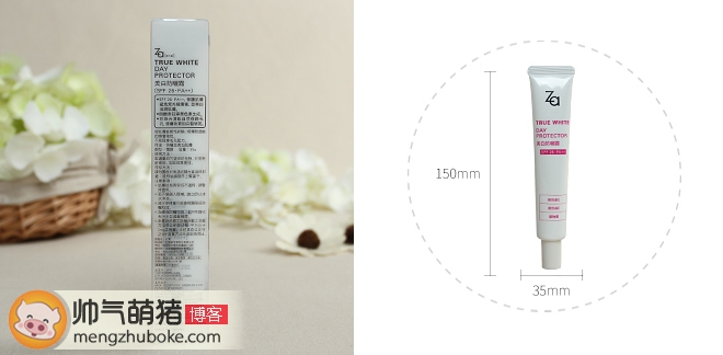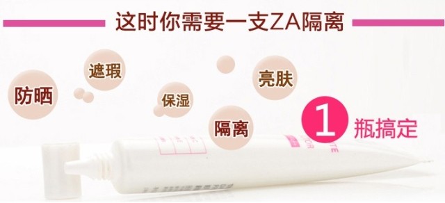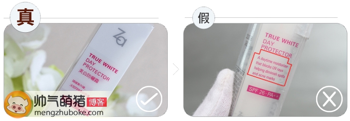 这款Za防晒霜现在市场上正品有两个版本,分别为上海产和台湾产,包装上有些细小的区别,上图中左边款为台湾产,名称是“美白防晒霜”;右图款为上海产,名称是“ZA新能真皙美白隔离霜”,产品上的文字为繁体字,文字排版有一定的差异。功效则是一样的。