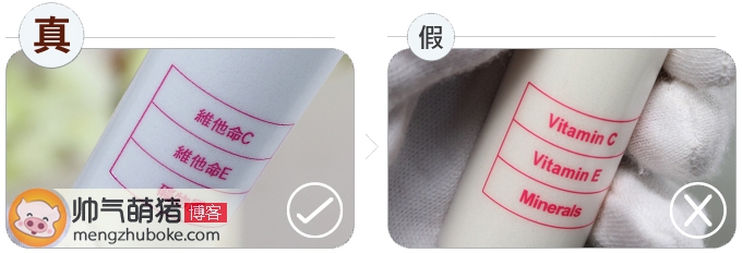 内包装瓶也有不同之处,先是这个尾管的条纹,正品瓶尾是横条纹的,瓶身纯白色且光滑有光泽,做工很细腻,英文字母为粗体与尾部距离短。而假货是斜条纹的,瓶身米白色且略显粗糙颜光泽度较差,做工不细腻,英文字母为锐利体与尾部距离远。