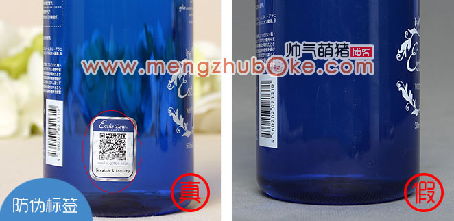 这是防伪标签,毫无疑问,正品的这款产品一定是像左边一样有防伪标签贴在瓶子侧面的,而且这个标签上的二维码是清晰和可读取和链接跳转的,正品的盒身侧面是贴有个防伪标签的,可以通过软件扫一扫,刮涂层,查询真假,而假货的瓶身则做贼心虚,瓶身没有贴任何的防伪标签。