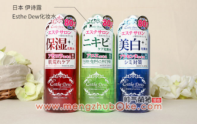 上图为三款伊诗露Esthe Dew化妆水分类合影,三款分别为:蓝色款,嫩白亮肤;绿色款,控油去豆;红色款,保湿补水。从包装上来看除了颜色与部分文字标注有区别外,正品的三款产品从包装上来讲绝对是不含糊的。
