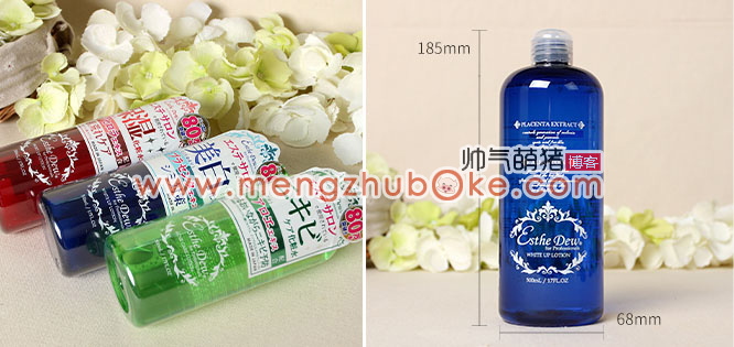 原装正品是用塑封外包装的。化妆水的质地(以蓝色款为例)十分透彻,带有清爽的化妆水香味。正品为三色款:(1)蓝色款,有保湿、嫩白、淡斑及滋养等效果,每日待续使用,不仅嫩白,而且深层滋润保养肌肤,使肌肤净透白皙,挥别涪沉,抑制黑色素的形成,提供肌肤无暇透明质感,是涪沉肌的选择;(2)绿色款,保湿、控油、去豆,含有芦荟成分,控油去豆,收敛毛孔,保湿滋润,成分安全,适合痘痘肌肤使用;(3)红色款,保湿、补水、净白、水嫩,含有樱桃精华,质地轻盈,上脸温和不刺激,清爽不粘腻,敏感肌肤的选择。