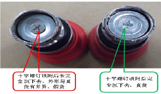 假货——热调螺丝钉镶嵌在螺母上,如下图所示: