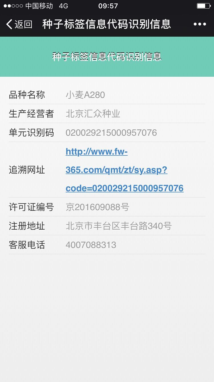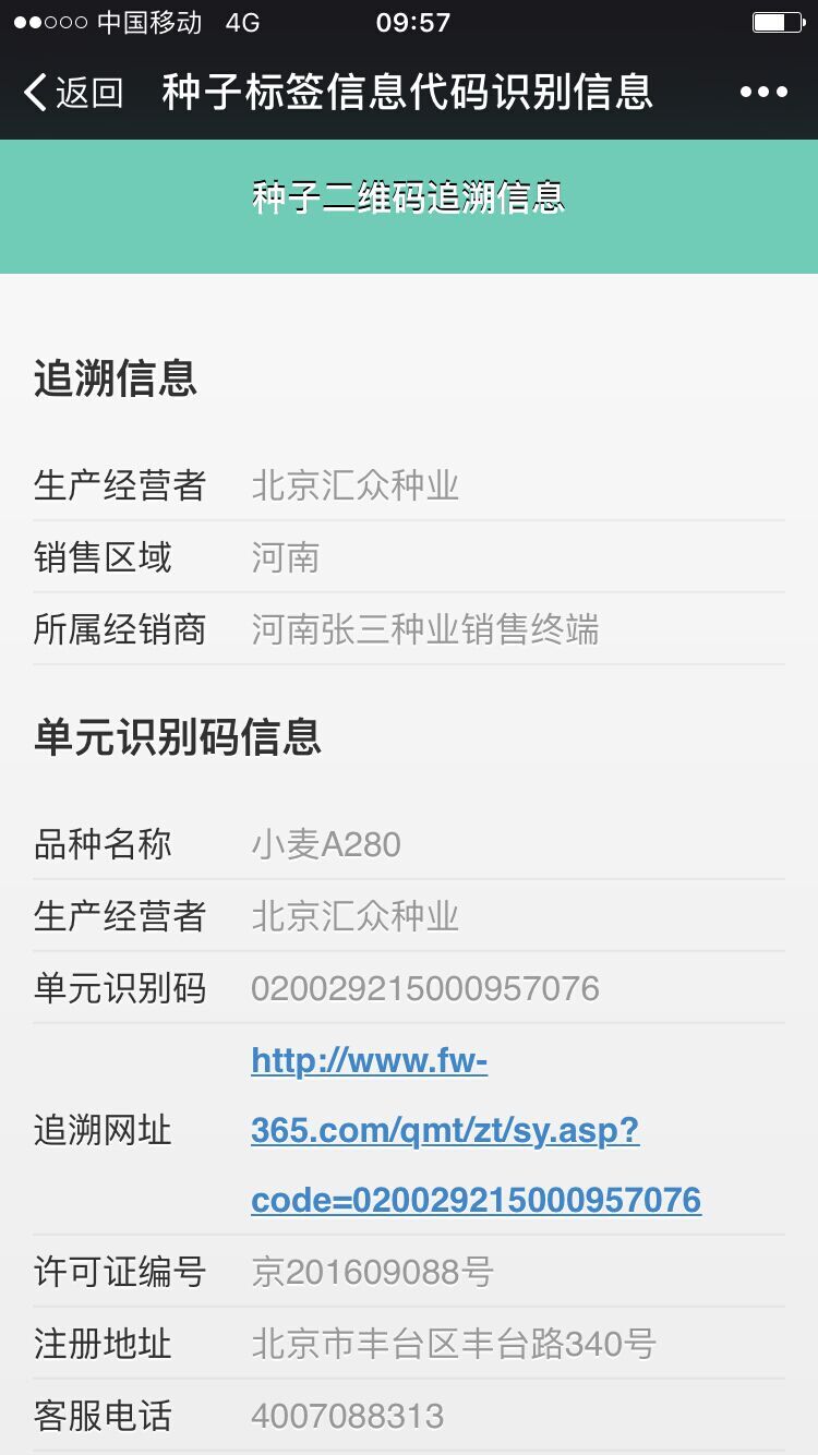 实际操作过程中我们赋予农作物种子最小销售单元一个二维码,这个二维码包含着品种名称、生产经营者名称或进口商名称、单元识别代码、追溯网址四项信息。完成赋码流程后,通过二维码识读器对小袋二维码进行逐袋采集,箱码提前人工粘贴,装入小袋,通过对箱码进行扫描,系统自动完成小袋二维码与箱子二维码关联的建立。出库销售后,消费者可以通过扫描二维码,实现查询农作物种子产品信息功能。而企业,则可以通过二维码追溯平台查看产品的流向。真正的实现产品来源可追溯,去向可追踪。
