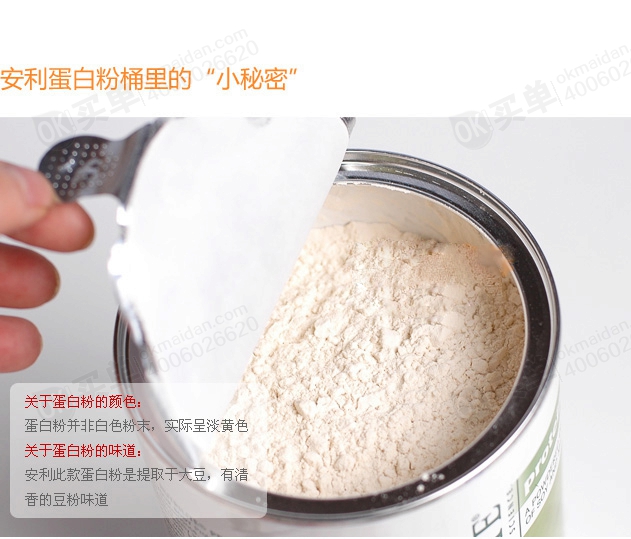 2)关于蛋白粉的颜色:美产安利蛋白粉并非白色粉末,而是呈淡黄色。